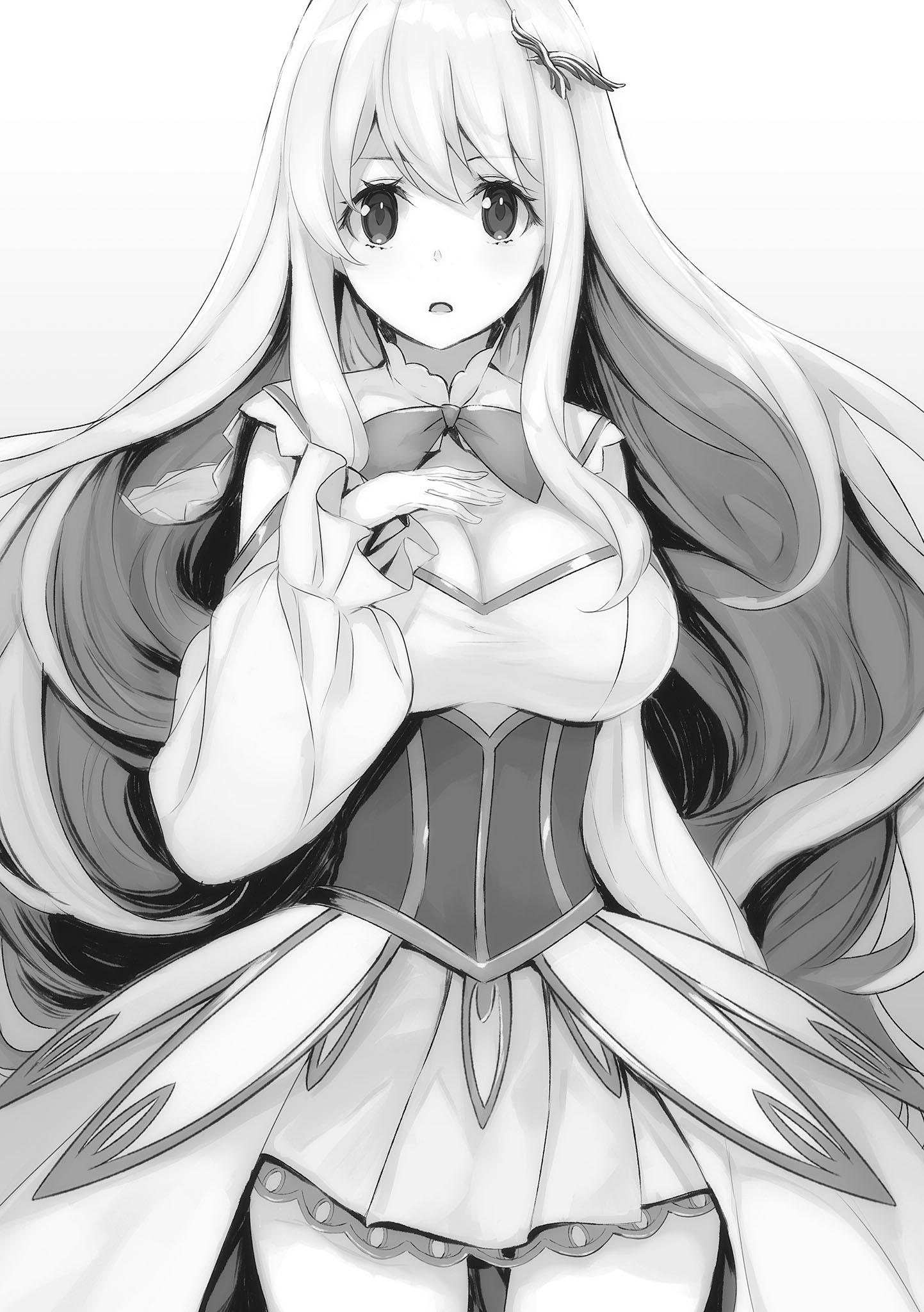 Rambut pirangnya yang panjang sedikit bergelombang, dan bersinar lembut saat terkena cahaya. Matanya yang biru pekat seperti lautan memancarkan cahaya lembut yang seolah bisa merangkul segalanya. Tubuhnya mungil, tetapi bahkan dari balik gaunnya terlihat bahwa ia memiliki lekuk tubuh yang indah.