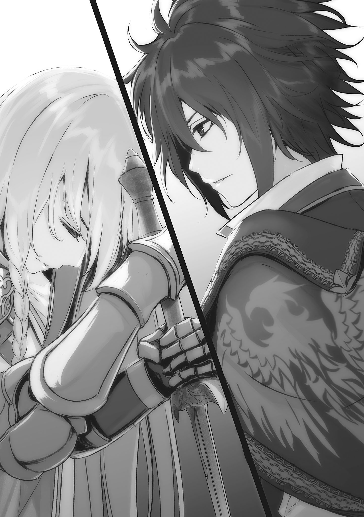 Yang satunya lagi adalah pria berambut pirang panjang. Pria dengan wajah rupawan itu tersenyum tipis sambil menatap lurus ke bawah pada Kaisar.
